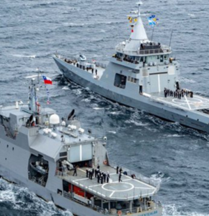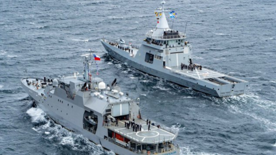 Con los buques posicionados en forma paralela, se entonaron los himnos nacionales, se rindieron honores y se realizó un saludo entre ambas delegaciones.