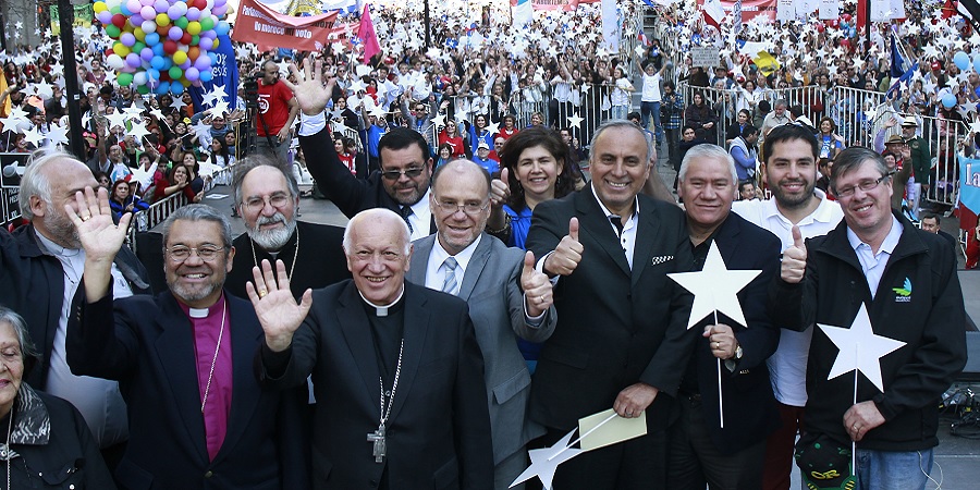 Esta tarde, el Paseo Bulnes, en pleno centro de Santiago, reunió a miles de personas que participaron en la «Celebración por la vida», una actividad organizada por las iglesias cristianas del país y que contó con la presencia, entre otros, del cardenal arzobispo de Santiago, Ricardo Ezzati.