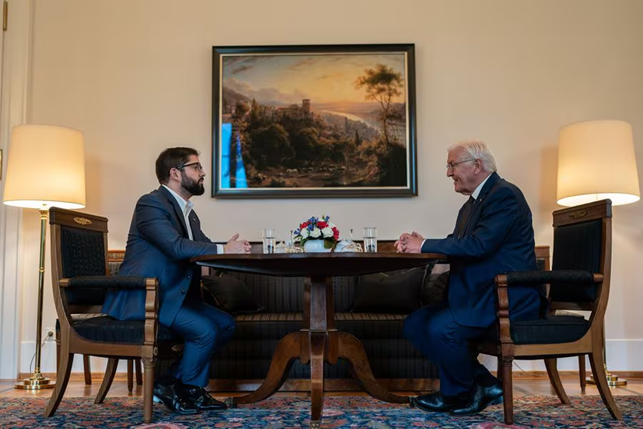 Posteriormente, el mandatario, junto a la delegación oficial, se reunió con el Presidente federal de Alemania, Frank-Walter Steinmeier, ocasión en que dejó un mensaje por escrito apuntando: “Por la fraternidad y la solidaridad chileno-alemana, hago voto por seguir cooperando para construir un mundo más justo y de paz”.
