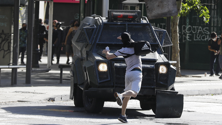 De acuerdo a información policial, el hecho ocurrió en calle Merced con avenida Vicuña Mackenna, cuando un grupo de personas se acercó a dos uniformados con la finalidad de arrojarles piedras y otros objetos contundentes. Los carabineros se replegaron y uno de ellos efectuó los disparos. No se registraron lesionados.