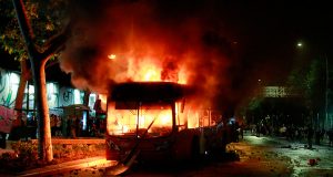 Banda quema tres buses de Transantiago en medio de incidentes en...