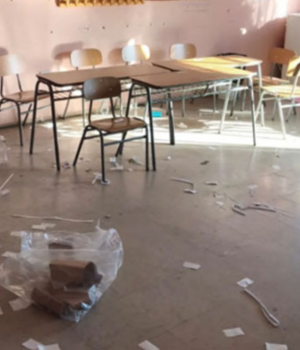 Valparaíso: La Asociación de Madres, Padres y Apoderados de la Educación Pública denunció un panorama similar, con salas llenas de mugre y desorden, bancos apilados sin criterio, urnas y casillas aún instaladas, y baños en estado «deplorable».