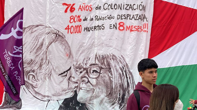 Durante el fin de semana fue colgado en el frontis de la Casa Central de la Universidad de Chile un lienzo con el mensaje «A romper la relación sionista, 76 años de colonización, 80% de la población desplazada, 40.000 muertos en 8 meses!!» y con un dibujo en el que se podía identificar a la rectora, Rosa Devés, recibiendo un beso del Primer Ministro de Israel, Benjamin Netanyahu.