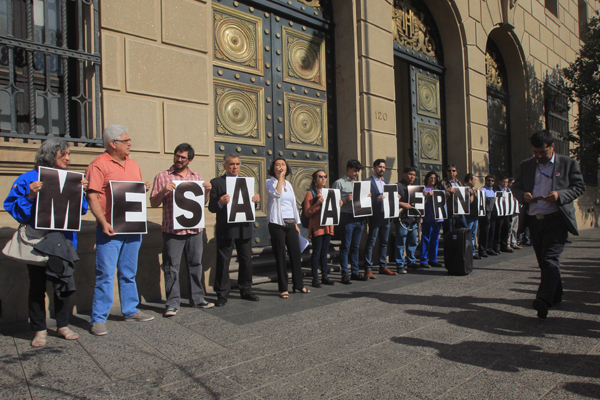 «Venimos a decirle al Gobierno que se equivoca sentando a la mesa de negociación a aquellos dirigentes que han enlodado la representación de las y los trabajadores de Chile en una elección fraudulenta y que no son los dirigentes de la CUT quienes queremos que nos representen», dijo la directora de la Asociación Nacional de Empleados Fiscales (ANEF), Jimena Aguirre, quien informó la creación de la Mesa Alternativa del Sector Público.