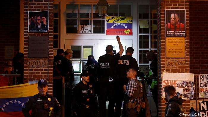 La policía comenzó este lunes (13.05.2019) un operativo para desalojar la embajada de Venezuela en Washington, tomada desde hace varias semanas por activistas estadounidenses que se oponen a la entrada de la delegación del líder opositor Juan Guaidó.