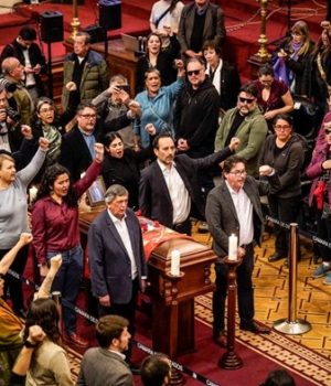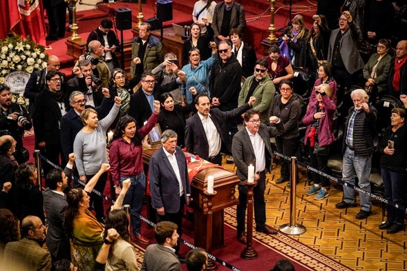 “Gracias por tu vida entera dedicada a construir un país más justo”. El escrito corresponde a uno de los más de 500 mensajes que se escribieron en el libro de condolencias del, hasta este martes, presidente del Partido Comunista, Guillermo Teillier. El texto no fue menor, pues fue redactado por el propio Presidente Boric, antes de señalar ante las cámaras que el otrora jefe de la lucha armada de su partido durante la dictadura “murió como un hombre digno, orgulloso de la vida que había vivido. Hay otros que mueren de manera cobarde para no enfrentar a la justicia. Ahí hay diferencias humanas”.