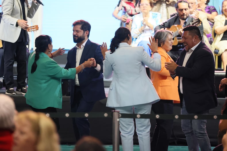 El acto buscó dar una demostración de fuerza y unidad en el inicio de un año electoral. La imagen de Boric, Jara -quien se llevó todos los aplausos-, Elizalde, Marcel y el presidente del PC, Lautaro Carmona, entre otros, bailando al ritmo de la alegre cumbia Pedacito de mi vida, fue un bálsamo en medio de las tensiones presidenciales.