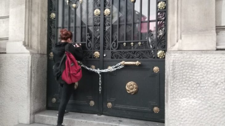 Las manifestantes, que llegaron encapuchadas al lugar cerrando los ingresos con candados y cadenas, buscan que la dirección de la casa de estudios se haga cargo de las denuncias internas sobre acoso y abuso sexual.