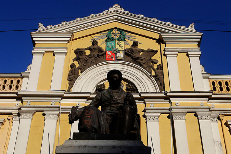 Colgando un gigantesco lienzo en el frontis de la Casa Central de la Universidad de Chile, cerca de 60 estudiantes se tomaron el edificio, todo en protesta contra el proyecto de fortalecimiento de universidades estatales que tramita el Congreso.