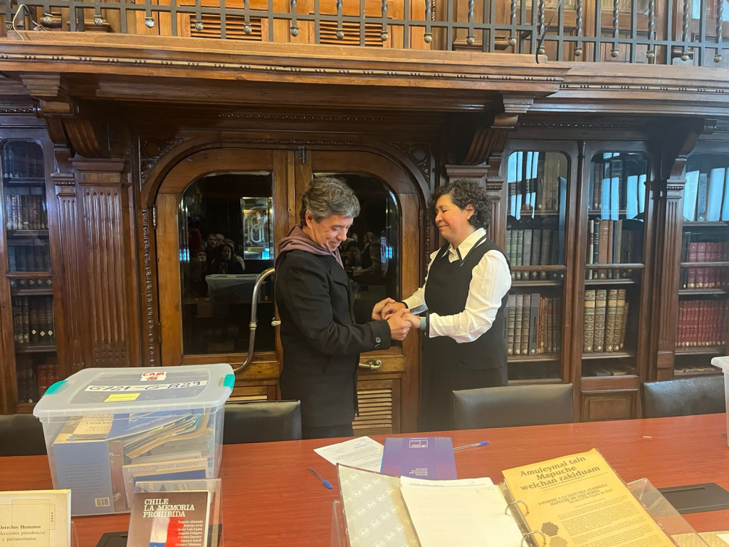 La familia de ex diputada PC Gladys Marín hizo donación de la biblioteca particular de la líder política a la Biblioteca Nacional de Chile que reunía alrededor de 2.500 libros y documentos. La presentación estuvo encabezada por María Soledad Abarca, directora de la Biblioteca Nacional, y Nélida Pozo, directora del Servicio Nacional del Patrimonio Cultural, quienes fueron acompañados por los hijos y hermanas de Gladys Marín en representación de su familia y el presidente del Partido Comunista de Chile, Lautaro Carmona, junto a una delegación de las JJCC y cercanos.