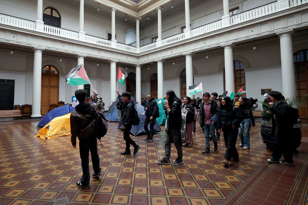 De hecho, un grupo de alumnos instaló carpas la semana pasada al interior de la casa central como medida de presión para que se adopte el petitorio que han solicitado, en apoyo a los palestinos de Gaza.