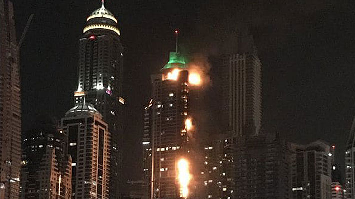 Un incendio de grandes proporciones afecta a un edificio residencial de 79 pisos en la ciudad de Dubai en Emiratos Árabes Unidos.