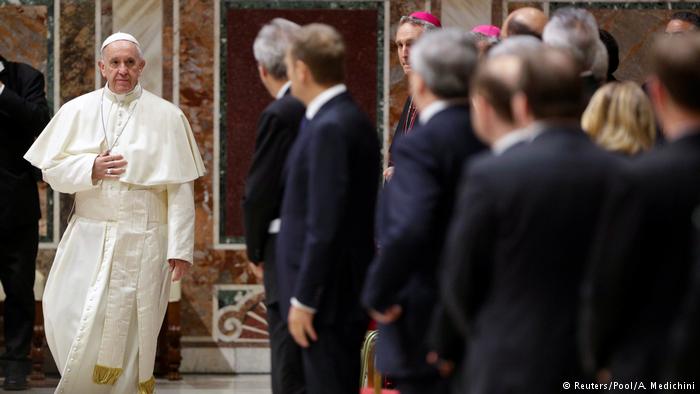 Vatikanstadt - Papst Franziskus empfängt EU Vertreter (Reuters/Pool/A. Medichini)Merkel, junto a otros líderes de la UE.