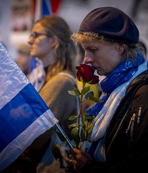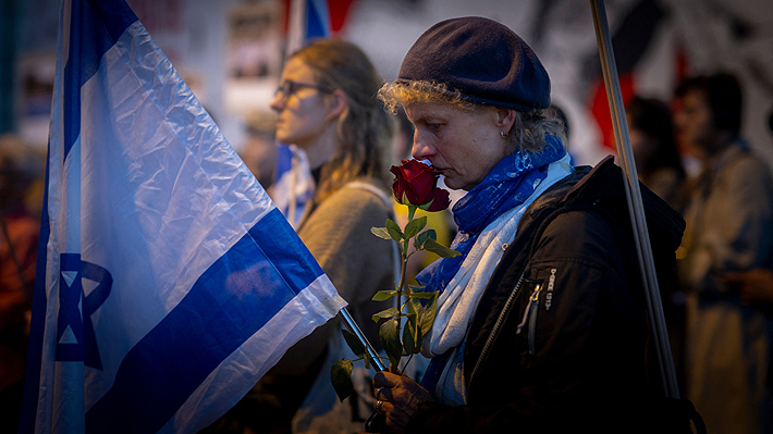Yalón estuvo en la concentración de Rehovot, en el centro de Israel, y portó una pancarta con el mensaje “Hasta que estén en casa estaremos en las calles”.
