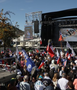El candidato presidencial del Partido Nacional Libertario, Johannes Kaiser, está llevando a cabo su acto de cierre de campaña este miércoles en la comuna de Providencia, Santiago.