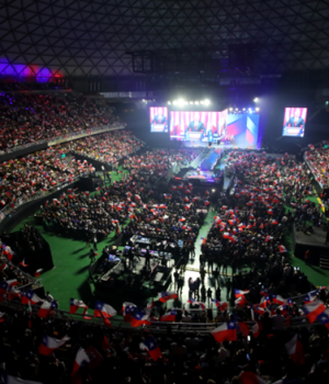 El candidato presidencial del Partido Republicano y el Partido Social Cristiano, José Antonio Kast, realizó este martes por la noche el cierre de su campaña para la Región Metropolitana en el Movistar Arena, logrando una convocatoria de aforo completo. El evento, uno de los últimos hitos de propaganda antes de la elección de este domingo, generó una alta expectativa en el sector.