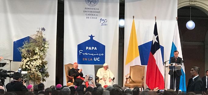 El Rector de la Pontificia Universidad Católica de Chile, Ignacio Sánchez, dio la bienvenida al Papa Francisco en la casa de estudios, en un discurso en el que destacó el compromiso de la institución con la “protección de la vida y de la familia”.