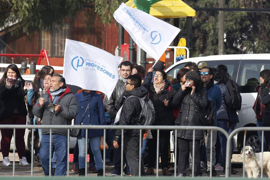 Los docentes arribaron a los alrededores del recinto y apuntaron sus gritos hacia la ministra de Educación, Marcela Cubillos.