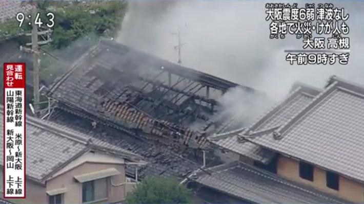 Además, varios edificios en las ciudades de Osaka y Takatsuki se derrumbaron e incendiaron, según las imágenes de la NHK, que informó de que podría haber personas atrapadas.