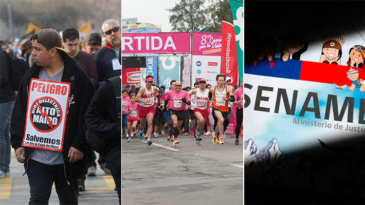 Este domingo 22 de octubre tres movilizaciones se tomarán el centro de la capital: Corrida por la Vida, organizada por la corporación Yo Mujer, una marcha en contra del proyecto hidroeléctrico Alto Maipo y una convocatoria por los niños, niñas y adolescentes del Sename.