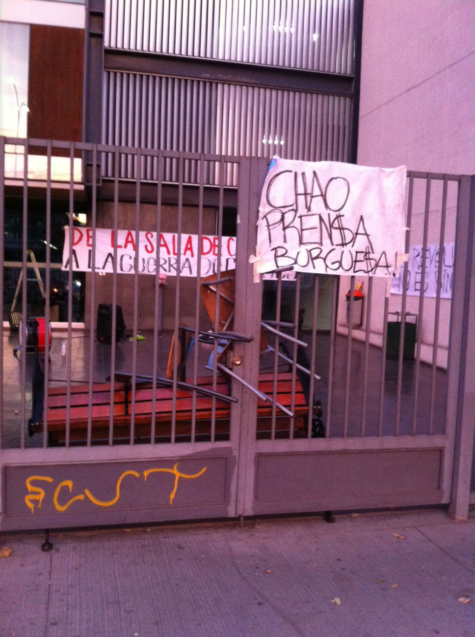 En toma amaneció la sede de Administración de la Universidad Diego Portales, en calle Manuel Rodríguez, en medio de la triple jornada de movilizaciones estudiantiles de este jueves.