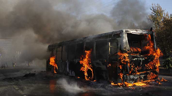 «Luego efectúa una maniobra para intentar esquivar las barricadas que había en el lugar, pero el bus queda atravesado en la calzada, llegando nuevamente los encapuchados, quienes, premunidos con elementos contundentes, le solicitaron descender del móvil, junto con los dos pasajeros que traía el bus», añadió.