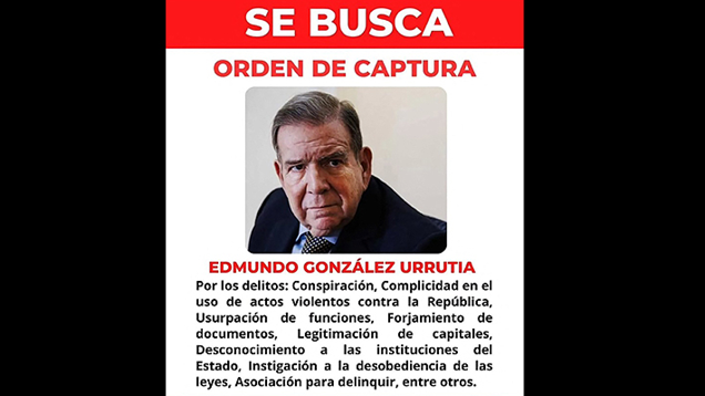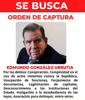 «Se busca. Orden de captura. Recompensa: 100.000$», dice un cartel publicado por la policía científica en redes sociales con la foto de González Urrutia, quien se exilió en España en septiembre, aunque ha prometido volver al país para «tomar posesión» el 10 de enero en lugar de Maduro.