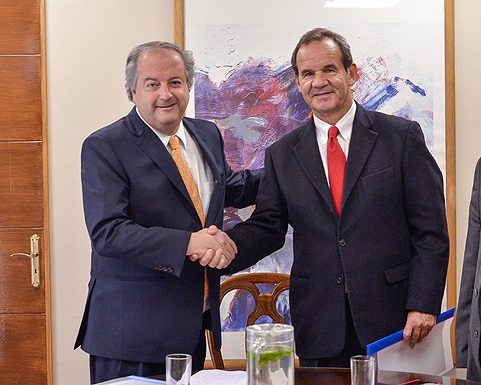 El senador Andrés Allamand (RN) llegó hasta el Ministerio del Trabajo para entregarle al titular de la cartera, Nicolás Monckeberg, tres proyectos de ley que presentará al Congreso en los próximos días, los cuales proponen establecer un contrato por hora y modificar la jornada laboral.