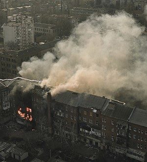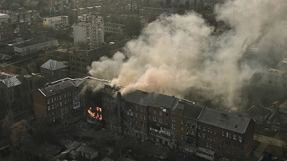 El primer disparo de un misil dañó la infraestructura civil y provocó un incendio, los equipos de rescate llegaron y comenzaron a «apagar el fuego, limpiar los escombros y buscar víctimas» cuando «el enemigo lanzó otro bombardeo con misiles», precisó el servicio de emergencias.