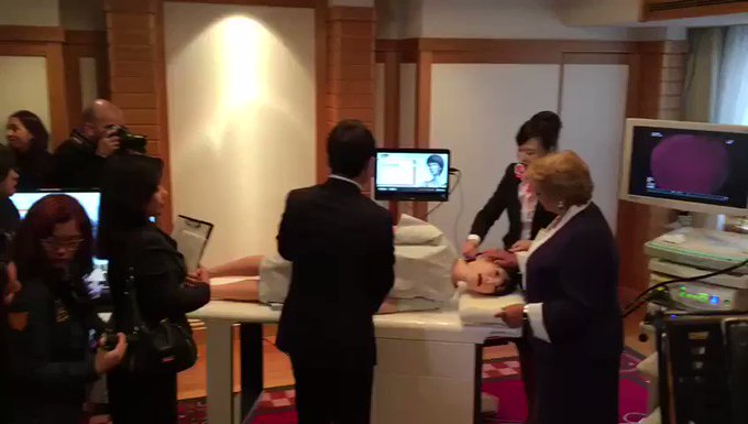 Ahora: Iniciando este lunes su última jornada de visita en Japón, la Pdta. @mbacheletparticipa en una demostración del robot de simulación médica “Mikoto”. #PdtaEnJapónpic.twitter.com/jYJlKsSrlb