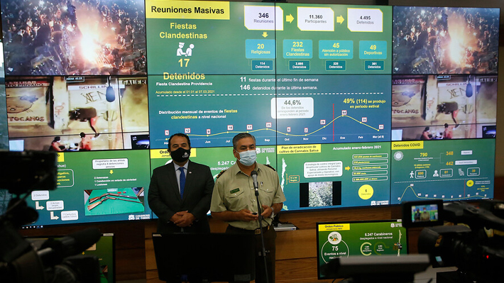 Según el director nacional de Orden y Seguridad de Carabineros, general inspector Esteban Díaz, «tuvimos ayer con la celebración del 8M 75 eventos a nivel nacional, desplegamos más de 5 mil carabineros en todo el país, hubo 1.585 en la Región Metropolitana y 3.600 en el resto del país apoyando los servicios normales que desarrollamos para mantener el orden público en cada una de las ciudades».