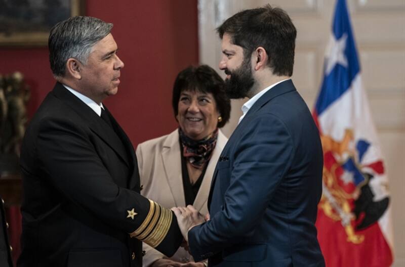 En un mensaje en redes sociales tras el encuentro con Cabrera, la ministra de Defensa, Adriana Delpiano, y el almirante De la Maza, el Presidente Boric agradeció a la autoridad saliente “por el profesionalismo y la entrega en estos cuatro años”.