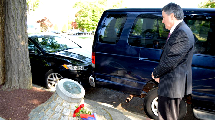 Durante la ceremonia, el secretario de Estado dejó una ofrenda floral en el monolito ubicado en Sheridan Circle, el cual marca el lugar en el que el ex colaborador de Salvador Allende fue asesinado por órdenes del régimen de Augusto Pinochet junto a Ronni Moffitt en 1976.