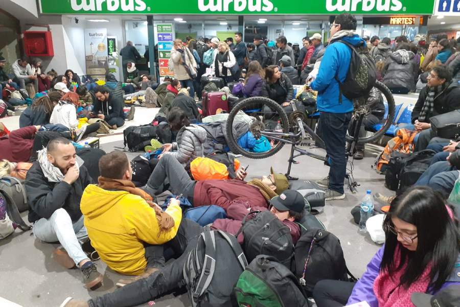 Por esta razón, numerosas personas incluso tuvieron que desplegar sacos de dormir y frazadas para dormir en pleno rodoviario.