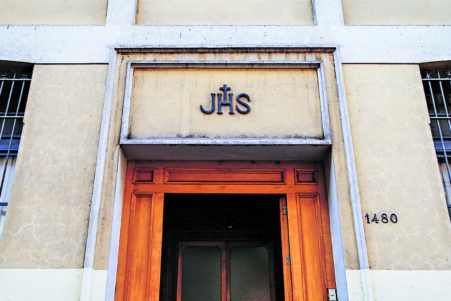 Desde afuera, a la altura del 1480 de la calle Alonso de Ovalle, resaltan las letras JHS, que en español se traduce como Jesús. Las tres letras incrustadas en la pared dan una primera pista. Así como el bronce “envejece”, los habitantes del lugar también.