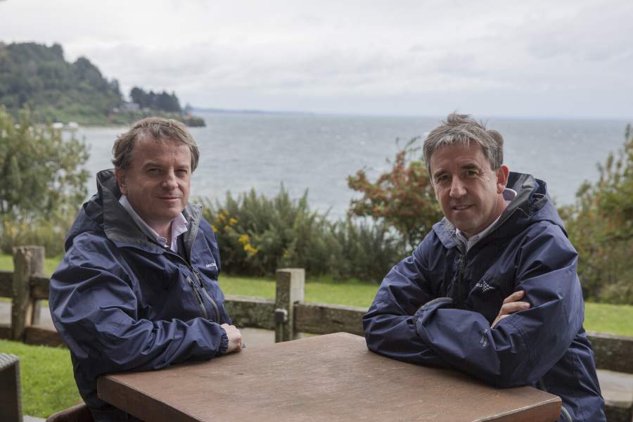 El presidente de AquaChile, José Guzmán (y también gerente general de Agrosuper, su matriz) junto al gerente general de la salmonera, Sady Delgado; anunciaron en Puerto Varas el fin de la producción de salmones en los lagos. Esto con la finalidad del cuidado y protección de esas aguas. En entrevista con PULSO ambos detallan este proceso, que involucró una inversión de US$35 millones para instalar pisciculturas en tierras. Según Guzmán “desde el punto de vista de los números, para salirse de los lagos hay que meterse las manos en los bolsillos e invertir fuerte”.