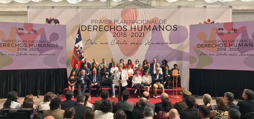 Desde el Patio de Los Naranjos del Palacio de La Moneda, la Presidenta Michelle Bachelet lanzó el primer Plan Nacional de Derechos Humanos 2018-2021, que incluye las recomendaciones del INDH.