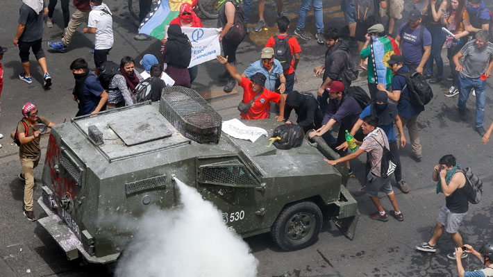 En provincias, en tanto, se reportó incendio en caja de compensación La Araucana en Los Ángeles; saqueos en un servicentro Copec y tienda telefónica Movistar de Concepción.