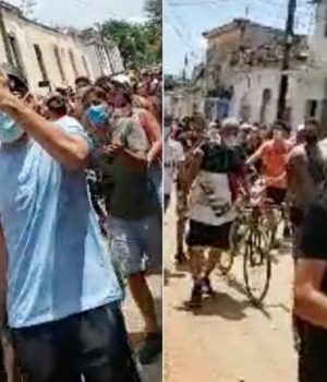 En las transmisiones se veía a un numeroso grupo de personas gritando consignas contra el gobierno, contra el presidente Miguel Díaz-Canel y pidiendo cambios.