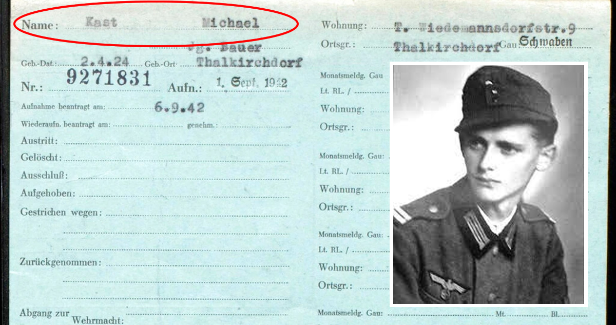 Según el libro de 2015 “La danza de los cuervos” del periodista Javier Rebolledo, sobre los cómplices civiles de la Dictadura de Augusto Pinochet, la esposa de Michael Kast -quien falleció en 2014- aseguró que su marido inicialmente tuvo aprensiones sobre unirse al partido Nazi, pero que un sargento lo convenció de hacerlo, ya que sería enviado a la península de Crimea (zona actualmente en disputa entre Rusia y Ucrania) en vez de la batalla de Stalingrado, un sangriento asedio que fue un punto de inflexión en la hasta entonces exitosa campaña nazi, con casi 250.000 muertos sólo entre las fuerzas de las Wehrmacht germanas.