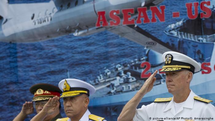 Ocho buques militares, cuatro helicópteros MH60 y un avión Neptuno P-8, así como más de un millar de soldados de EE. UU. y los diez países de la ASEAN participan en las maniobras. (picture-alliance/AP Photo/G. Amarasinghe)Ocho buques militares, cuatro helicópteros MH60 y un avión Neptuno P-8, así como más de un millar de soldados de EE. UU. y los diez países de la ASEAN participan en las maniobras.