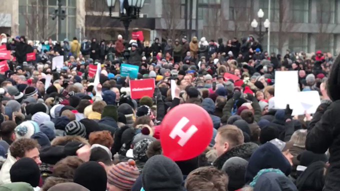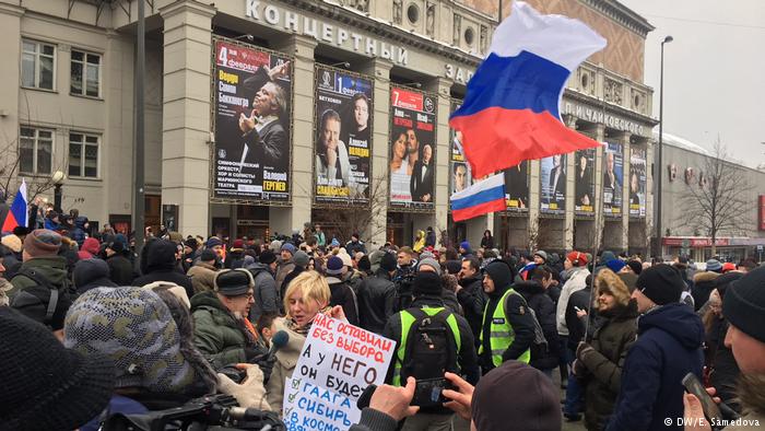 «Ciudadanos, por favor, aléjense. Están bloqueando el camino para los peatones». Una y otra vez, los anuncios de la Policía se podían escuchar desde el altavoz de una furgoneta en la plaza Pushkin de Moscú. Sin embargo, los 2.000 manifestantes que se reunieron para esta manifestación, que no fue aprobada por las autoridades rusas, ignoraron los mensajes. En su lugar, gritaban en voz alta «Rusia libre» o «Rusia sin Putin». Emily Sherwin, de DW, desde la protesta reportó como los manifestantes tildaban a Putin y al alcalde de Moscú, Sobyanin, de «ladrones».
