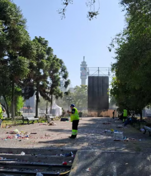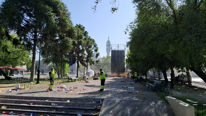 El director de Operaciones de la Municipalidad de Santiago, Miguel Olivares, detalló que para el aseo del sector se desplegaron 200 personas en el barrido, además de personal en maquinaria, incluyendo hidrolavado. (NP-Perplexity-La Tercera)