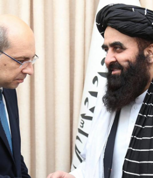 «Esta valiente decisión servirá de ejemplo a otros países”. Con estas palabras, el ministro de Exteriores del Gobierno talibán afgano, Amir Khan Muttaki (en la foto junto al y el embajador ruso, Dmitri Zhirnov, en Kabul, el 3 de julio de 2025), celebró la declaración de Rusia para reconocer oficialmente su Gobierno.