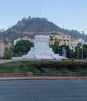 Los partidarios del abanderado del Frente Social Cristiano colocaron pasto y flores en la mitad del perímetro, así como también pintaron de blanco la mitad del pedestal donde se situaba el monumento al General Baquedano.