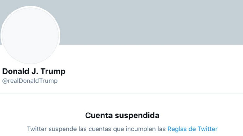 La red social suspendió temporalmente este miércoles la cuenta de Trump durante 12 horas, después de que el presidente justificara en un tuit el asalto al Capitolio por parte de sus simpatizantes, que resultó en cinco muertos, al menos trece policías heridos y todo tipo de destrozos en la sede del Legislativo.