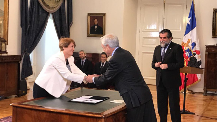 El decreto que la designa ministra de Estado fue leído por el subsecretario de Interior, Rodrigo Ubilla. «Sí, prometo, Presidente», dijo en la ceremonia desarrollada ante la presencia de su predecesor Mauricio Rojas y los ministros Andrés Chadwick (Interior), Gonzalo Blumel (Segpres) y Cecilia Pérez (Segegob). Luego Valdés saludó al saliente Mauricio Rojas quien se vio tranquilo, durante la ceremonia. Tras ello, fue el Presidente quien tomó la palabra y dijo: «En primer lugar quiero agradecerle a Mauricio Rojas por muchas cosas, por su capacidad, por su compromiso, por su lealtad, por su vocación de servicio público y también por su paciencia». «Espero que podamos seguir colaborando, porque, ministro, usted lo sabe que le tengo un gran aprecio y una gran admiración», añadió.